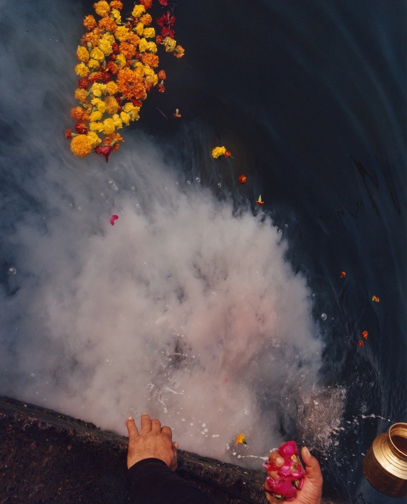 Lele was accompanied by the renowned photographer and childhood friend Jamie Hawkesworth, who has worked on many occasions for the American, British and Italian editions of Vogue. His sharp eye and his great delicacy in photographing details managed to capture the essence of such a sacred moment. All the pictures were mostly shot in the early morning from 4am along the worshipped river and manage to encapsulate the essence of Lele’s multicultural work.